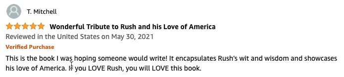 This website, TributeToRush.com, like the book, is meant to be an expression of why we, Rush’s loyal listeners, continue to be grateful for Rush and what he taught about liberty and freedom during 33 years of broadcast excellence. This site means to carry the message forward, to help Hillsdale College and other freedom-loving institutions and people save America as founded the way Rush hoped we would.